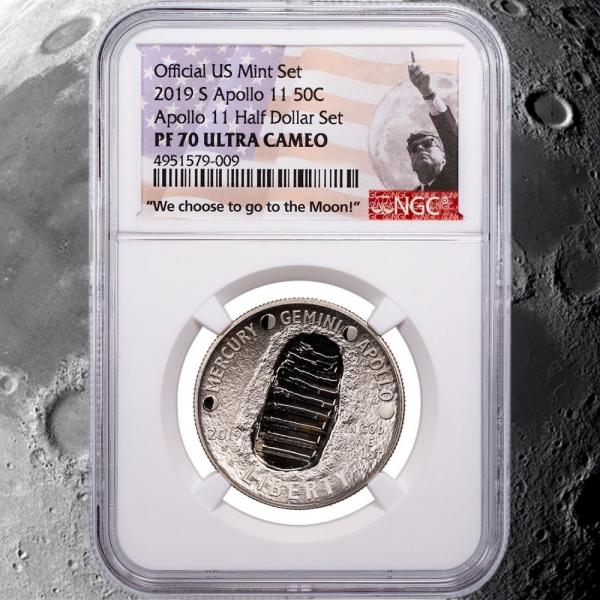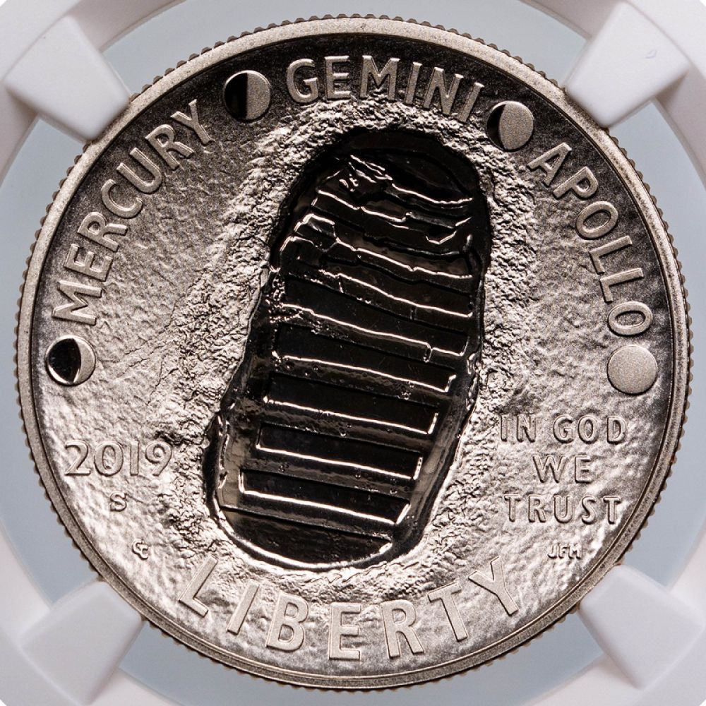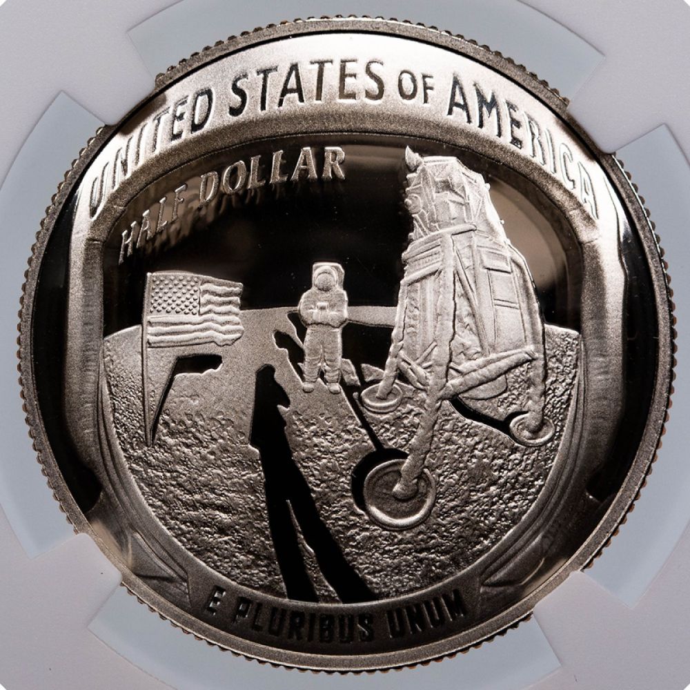 This 2019-S Apollo 11 Half Dollar was struck to honor the 50th anniversary of the moon landing.